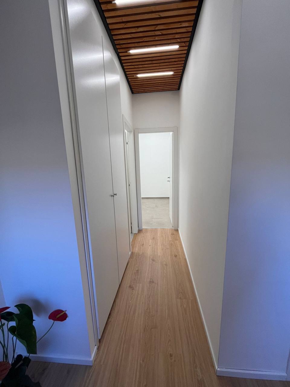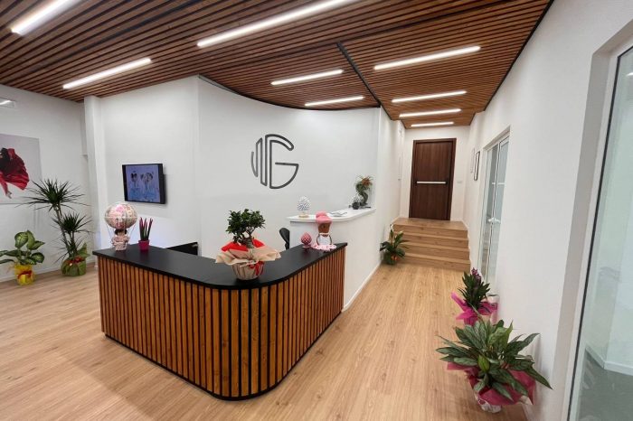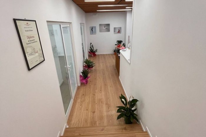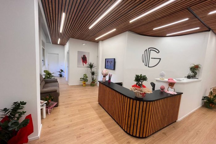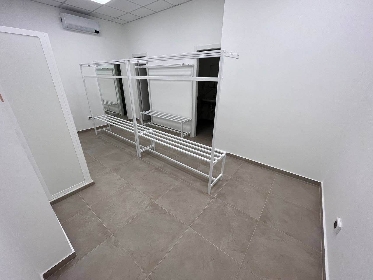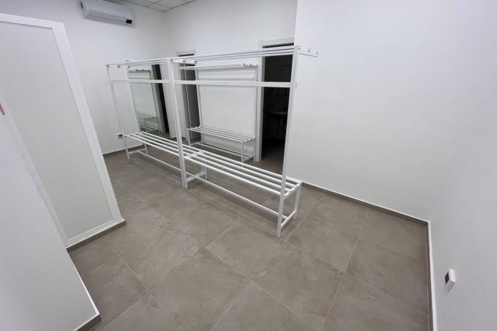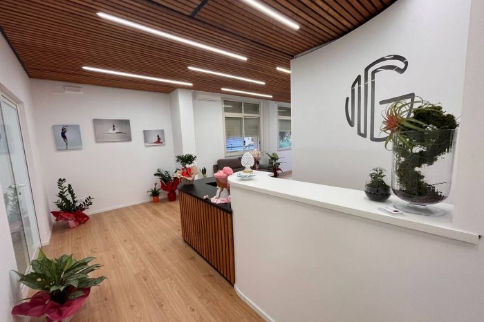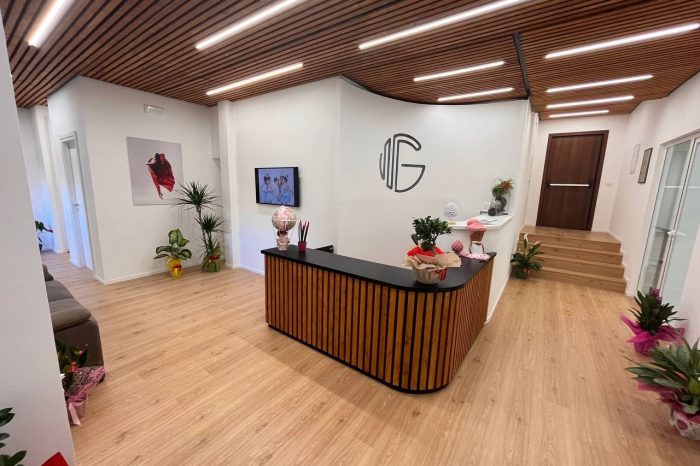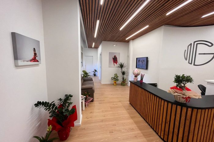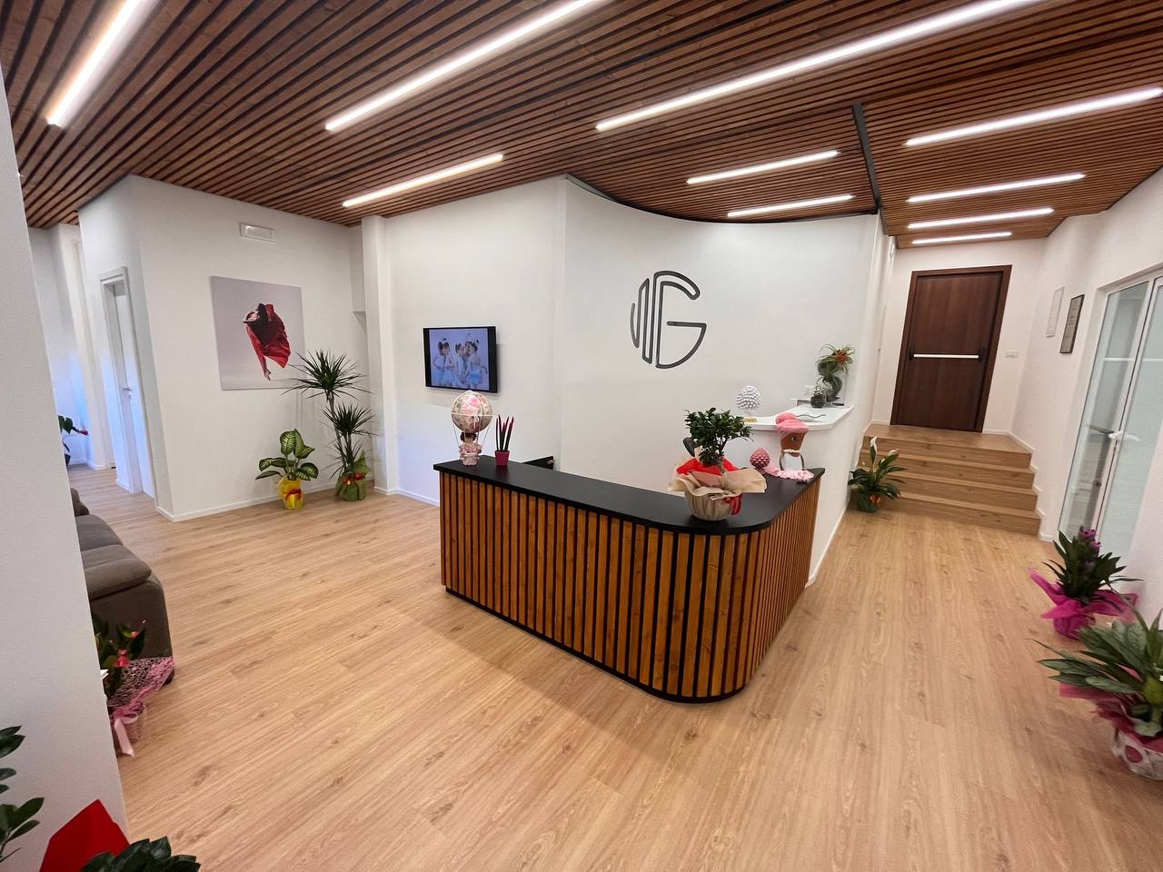 La hall di ingresso è caratterizzata da un soffitto con pannelli in legno e lame di luce incassate, che conducono a un’ampia sala di danza, quasi interamente vetrata, alla zona servizi e spogliatoi. I colori caldi del legno diventano elemento caratterizzante del progetto, riproposti nel bancone reception e nella pavimentazione in parquet. Il pavimento della sala di danza è rivestito da un tappetino in gomma integrato, materiale estremamente resistente e ideale per la danza. La cura nella scelta dei materiali e nella progettazione architettonica ha permesso di realizzare un ambiente confortevole e accogliente in cui svagarsi e allenarsi.