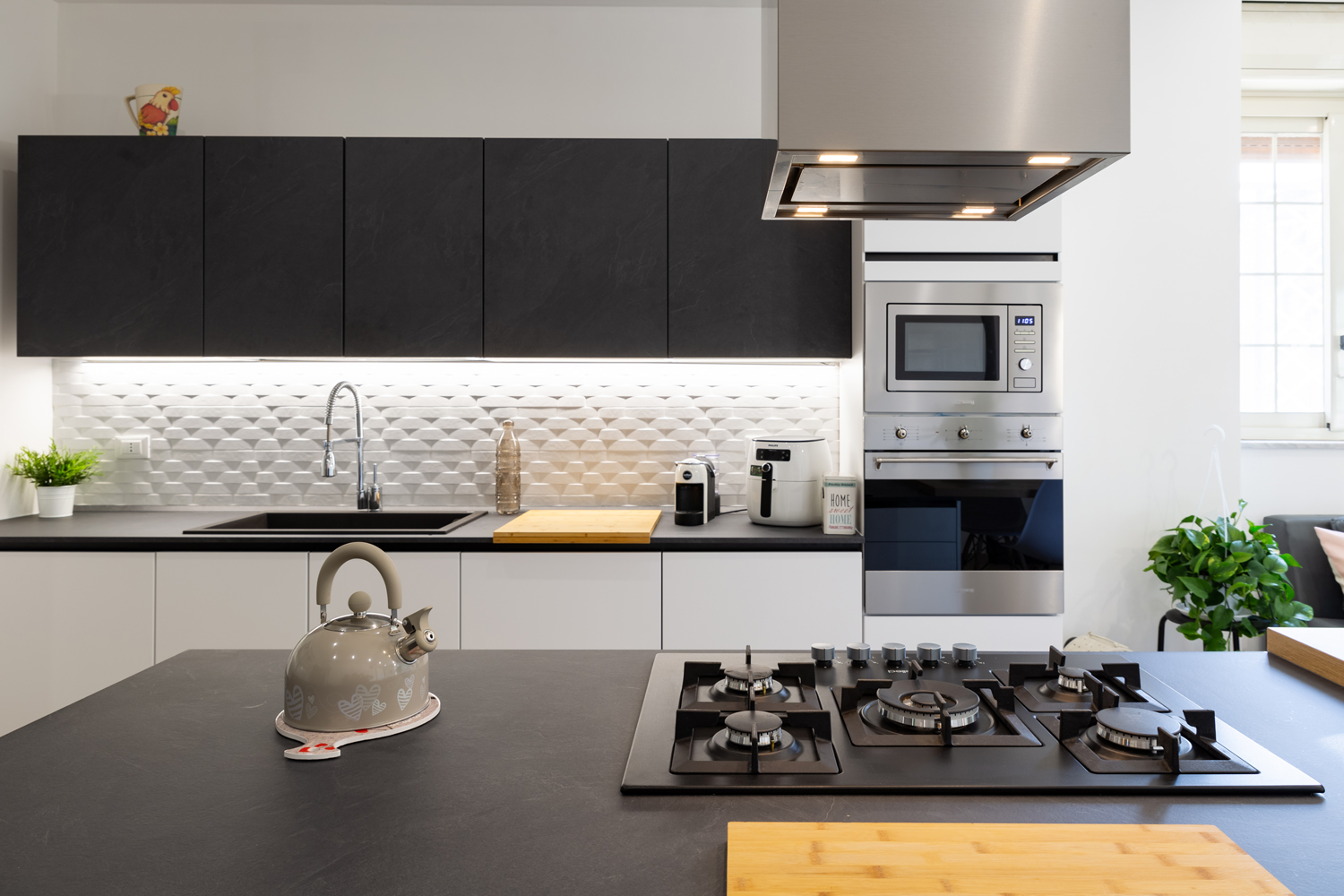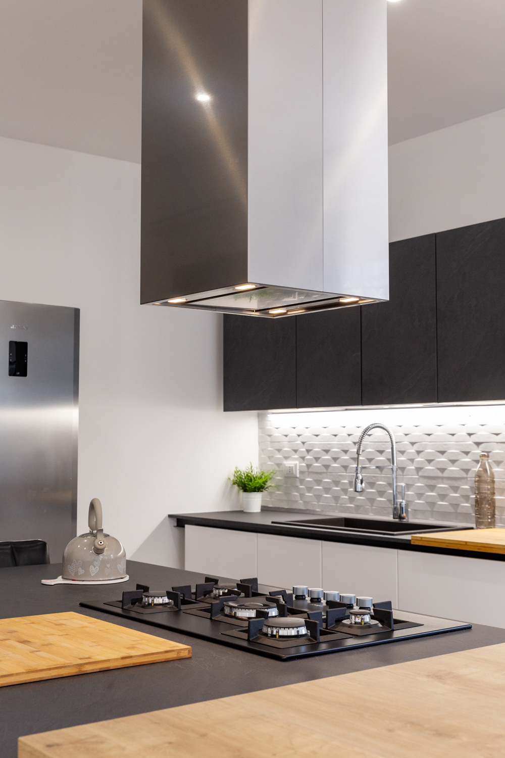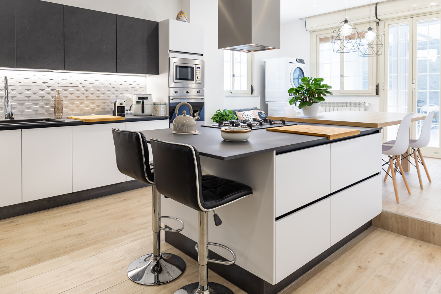 In questo progetto si è dato valore alla possibilità di creare ambienti ampi e confortevoli. La zona living gode di luci led che offrono la giusta atmosfera per ogni occasione. Un Disimpegno fa da filtro per la camera da letto matrimoniale con bagno in camera un ulteriore stanza da letto, bagno principale e cucina- sala da pranzo. Quest’ultima molto ampia, caratterizzata da un arredo moderno che coinvolge l’intero spazio donando funzionalità e confort, al cui centro si sviluppa un’isola con piano cottura e tavolo integrato. Attività di Progettazione e Direzione Lavori.
